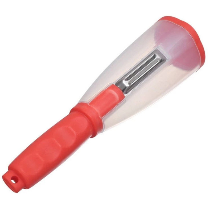 پوست کن مخزن دار دستی و از جنس پلاستیک است که بسیار مناسب جهت امور روزانه در آشپزخانه می باشد.جهت سهولت کار با تیغه ی تیز و برنده و ضد زنگ طراحی شده است ، همینطور طراحی بروز وارگونومیک که مانع زخمی شدن دست میشود. دارای مخزن درب دار برای پوست های جدا شده می باشد .